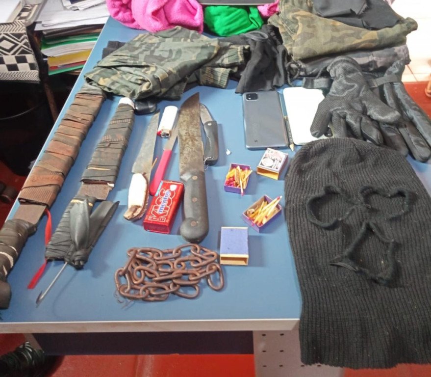 Facas e demais objetos apreendidos com os menores (Foto: Divulgação/GMD)