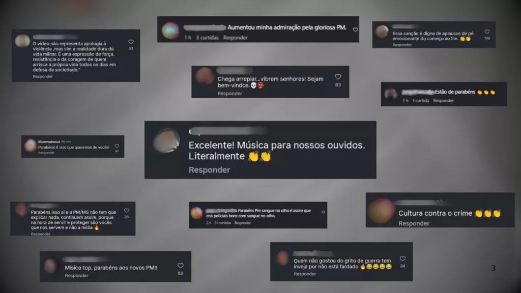 Nas redes sociais, várias pessoas saíram em defesa dos novos militares. “O vídeo não representa a apologia à violência, mas sim a realidade dura da vida militar. É uma expressão de força, resistência e da coragem de quem arrisca a própria vida todos os dias em defesa da sociedade”, escreveu uma mulher.