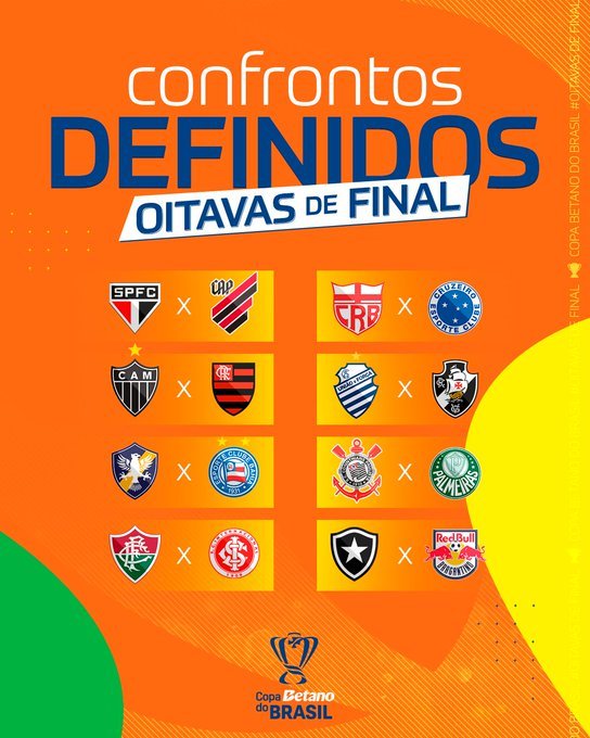 Com destaque para o clássico entre Palmeiras e Corinthians, foram definidos os confrontos das oitavas de final da Copa do Brasil. Para definir as próximas partidas da competição nacional, a Confederação Brasileira de Futebol (CBF) realizou um sorteio na tarde desta segunda-feira (2) em sua sede no Rio de Janeiro.
