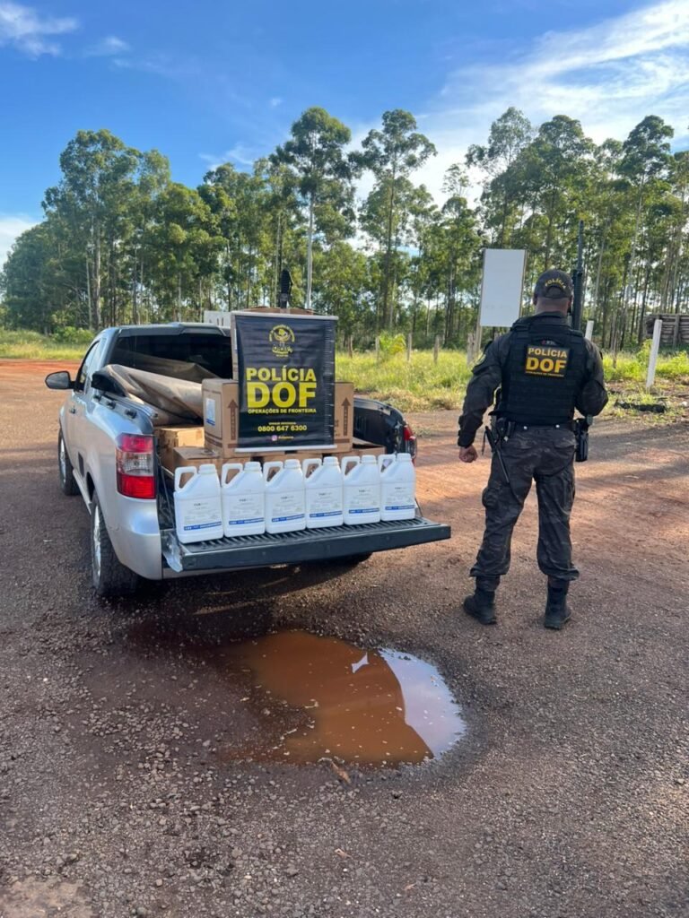 Policiais militares do DOF (Departamento de Operações de Fronteira) apreenderam, nesta quinta-feira (8), na MS-164, em Ponta Porã, um veículo GM Montana carregado com 250 litros de defensivos agrícolas contrabandeados do Paraguai. Na ação, um homem de 48 anos foi preso.
