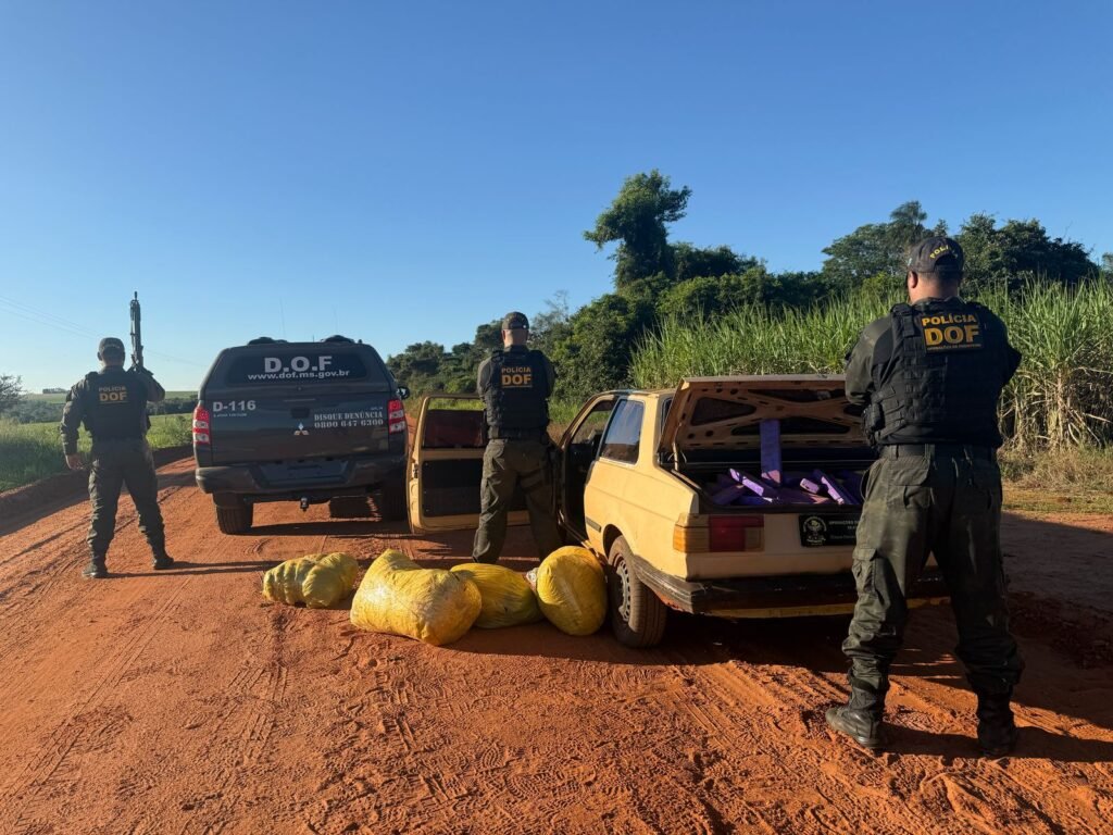 Policiais militares do DOF (Departamento de Operações de Fronteira) apreenderam nesta quinta-feira (15), em Iguatemi, 350 quilos de maconha e skunk, que eram transportados em um veículo VW Voyage. Na ação, ninguém foi preso.