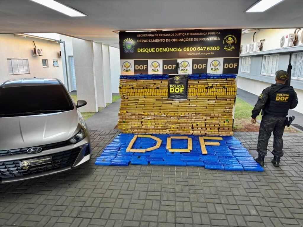DOF apreende HB20 roubado com mais de mil quilos de drogas em Dourados