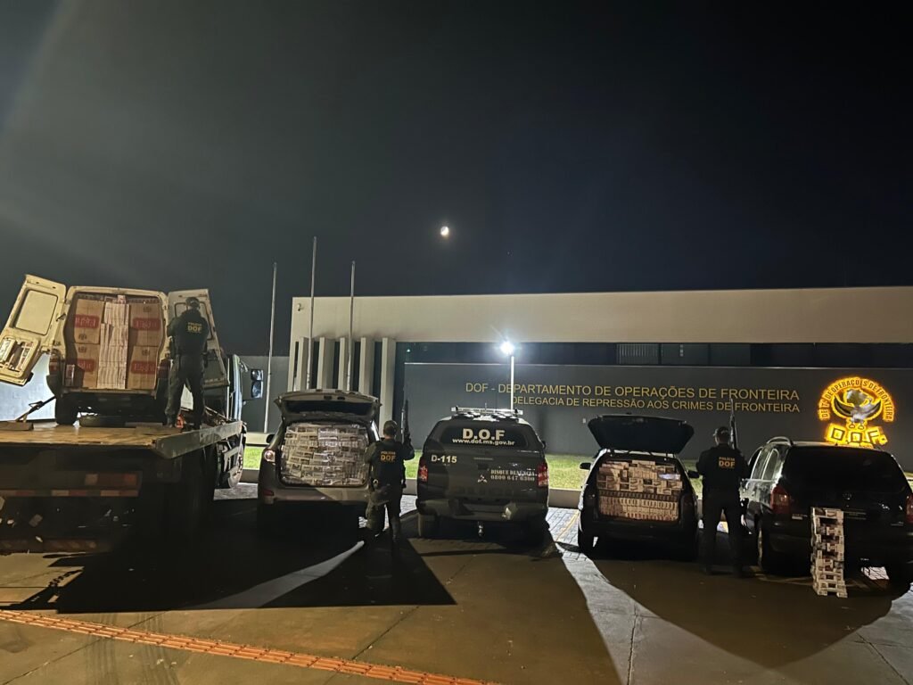 Policiais militares do DOF (Departamento de Operações de Fronteira) apreenderam, na noite desta quarta-feira (15), na BR-463 em Dourados, quatro veículos carregados com mais de 11 mil pacotes de cigarros contrabandeados do Paraguai. Na ação, um homem de 26 anos foi preso em flagrante.