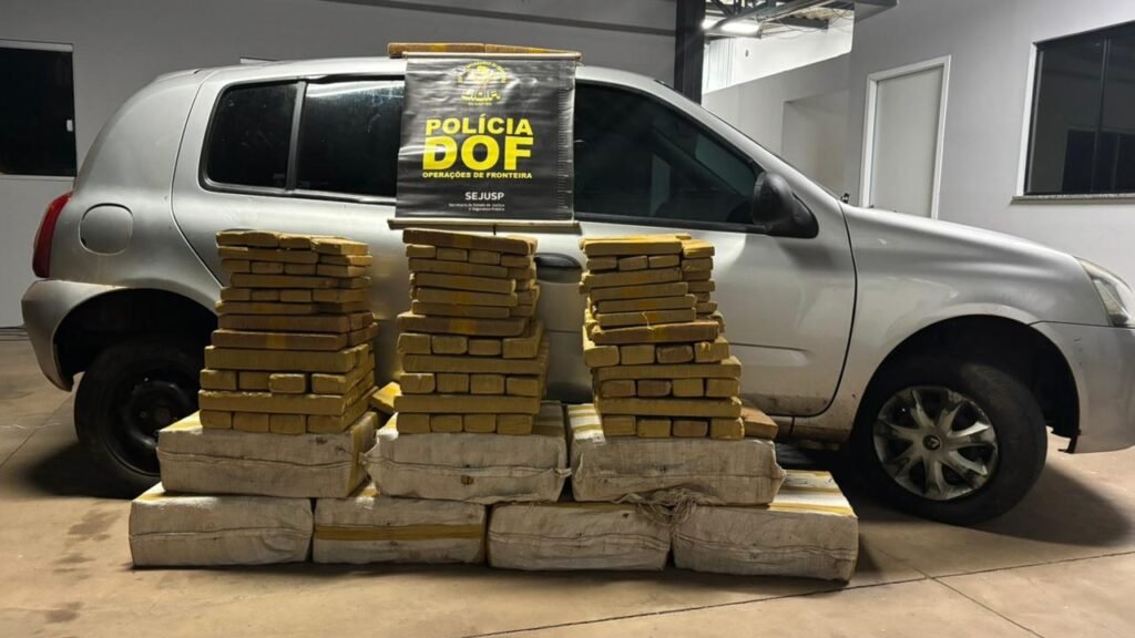 Policiais militares do DOF (Departamento de Operações de Fronteira) prenderam, na noite desta segunda-feira (12), no Assentamento Itamarati, em Ponta Porã, um homem de 26 anos, que transportava 267 quilos de maconha em um veículo Renault Clio.