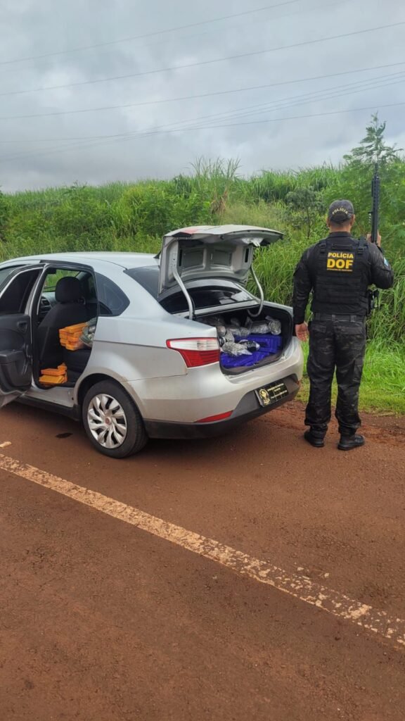 Os policiais faziam bloqueio na MS-379, quando abordaram a condutora do veículo. Durante vistoria, foram encontrados diversos tabletes de maconha no interior do automóvel e no porta-malas.