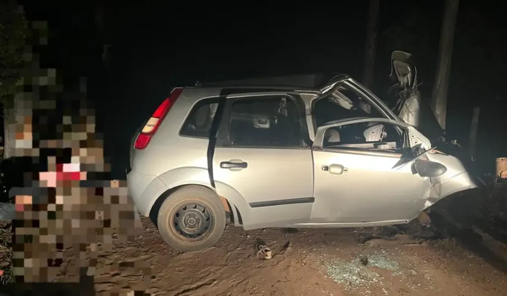 No acidente, duas crianças, de 2 e 5 anos, morreram. O carro da família, que seguia em estrada na área rural de Taquarussu, bateu em árvore.