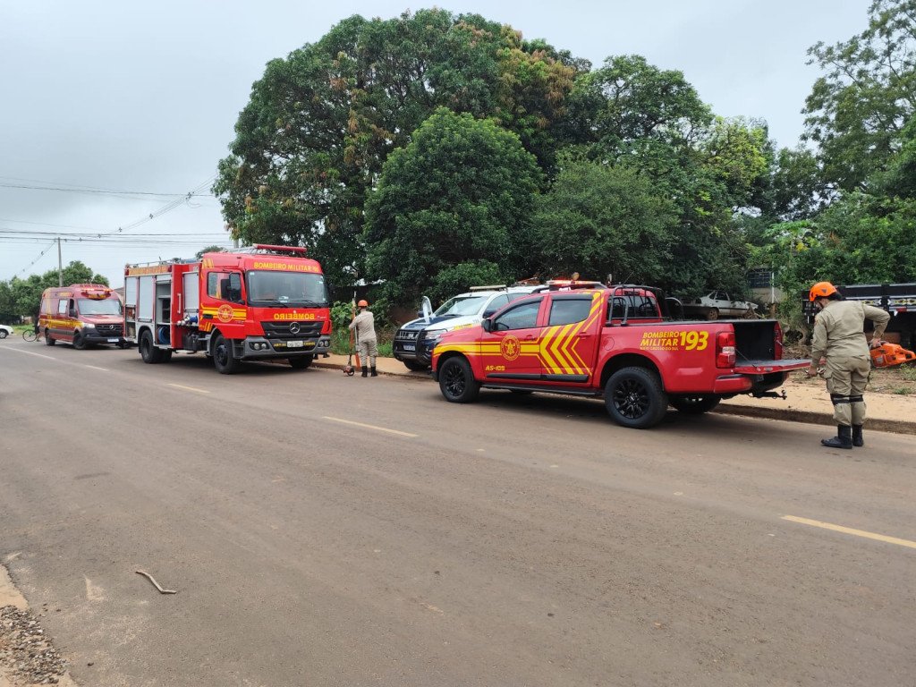 Jovem sobe em árvore para fugir da polícia e precisa ser resgatado pelo Bombeiro
