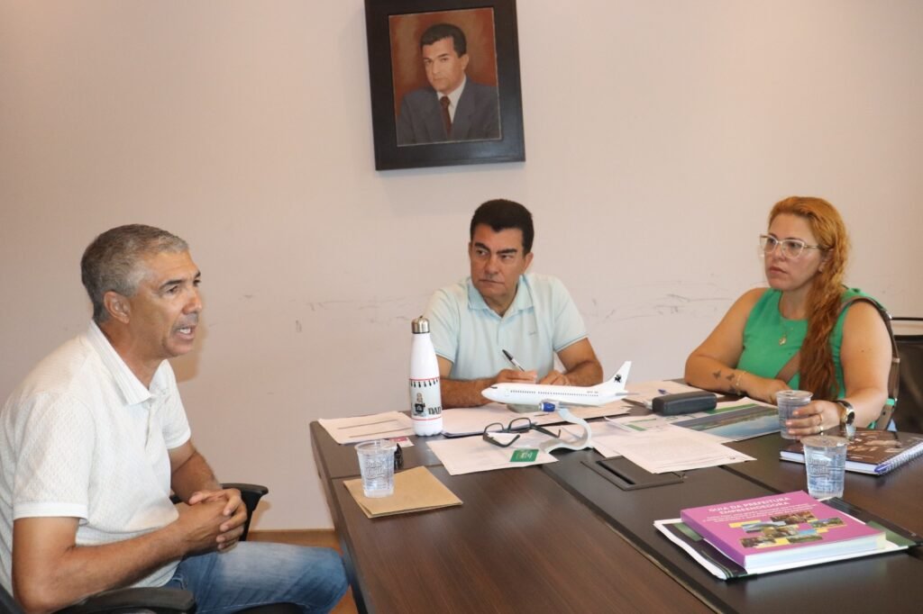 O desportista Salim Raidan Neto reunido com o prefeito Marçal Filho e com a interina Sandra Giselly Amaral Assunção – Foto: A. Frota