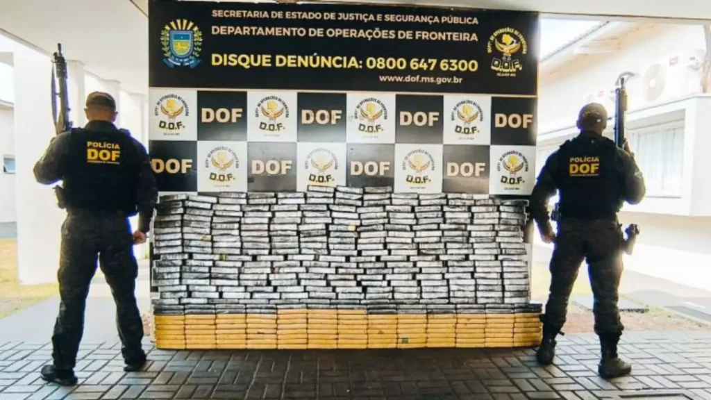 O condutor disse aos policiais que pegou o carregamento em Ponta Porã, na fronteira com o Paraguai, e deveria levar até a cidade de Maringá, no Paraná.