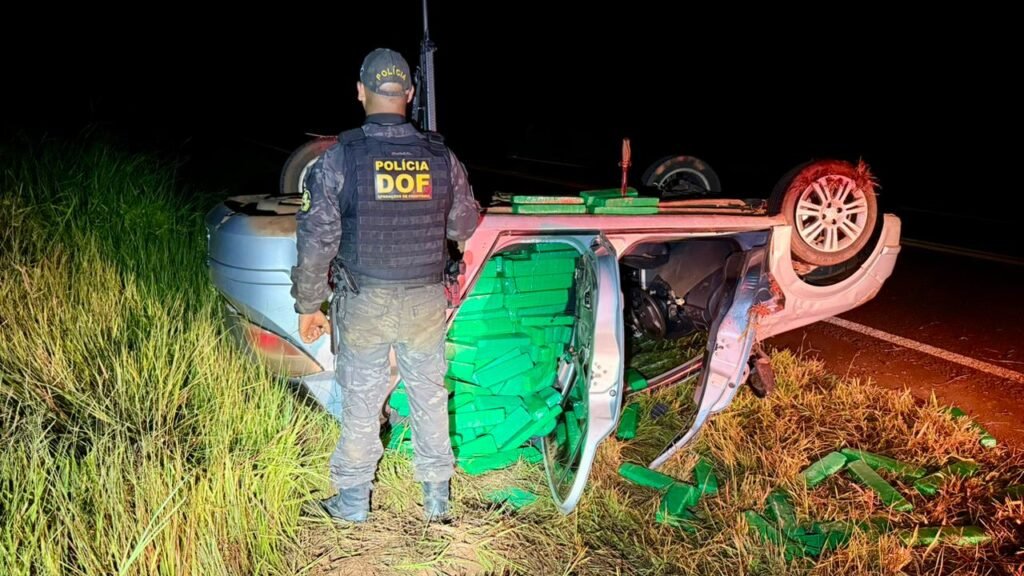 Um homem de 20 anos de idade foi preso pelo DOF (Departamento de Operações de Fronteira), após tentar fugir e capotar o veículo com 1.080 quilos de maconha. A ação foi registrada nesta quinta-feira (29), na MS-164, em Ponta Porã.