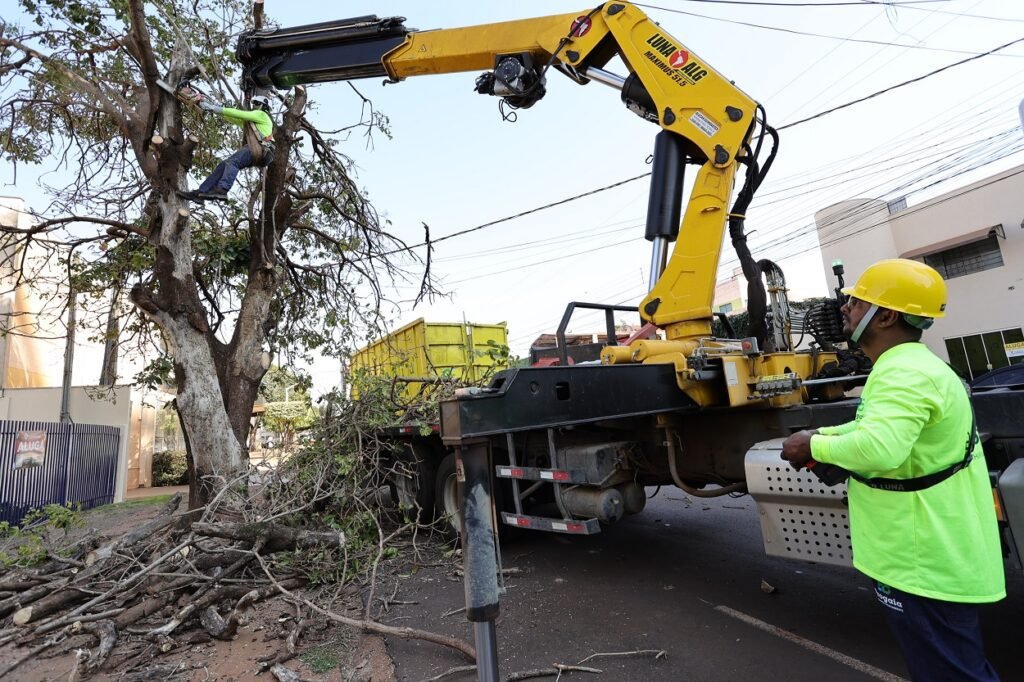 O trabalho é conduzido pela empresa especializada Progaia Engenharia e Meio Ambiente Ltda, contratada pela administração municipal. Além da retirada segura, a empresa realiza a trituração dos resíduos vegetais, remoção de tocos e destinação adequada do material, seguindo as diretrizes do Plano Diretor de Arborização Urbana (PDAU).