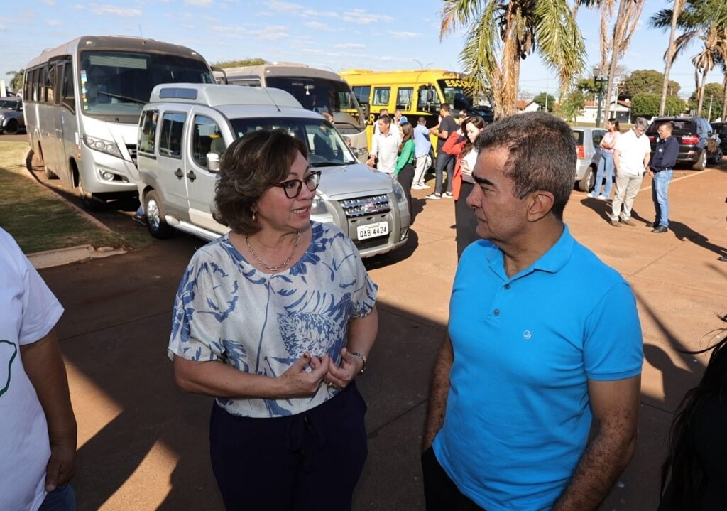 A Prefeitura de Dourados fez na manhã desta terça-feira (15) a entrega de três ônibus e um veículo Fiat Doblô para atendimento ao público nas Secretarias Municipais. Um ônibus novo, adquirido com recursos do Ministério da Educação, via Fundo Nacional de Desenvolvimento da Educação (FNDE), foi entregue para uso da Secretaria Municipal de Educação (Semed) e dois ônibus e o carro de passeio, restaurados, foram entregues para uso da Secretaria Municipal de Assistência Social (Semas).