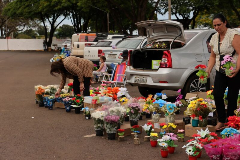 Giovana Aparecida Santos Vargas, 43, trabalha como ambulante há 10 anos. Ela trabalha com arranjos artificiais e naturais. Também vende velas e fósforos e se diz satisfeita com o ganho. “Dá pra tirar um pouquinho, pagar o custo e ter um pequeno lucro”, revela. “Nos primeiros anos foi mais difícil, mas a gente vai aprendendo, ganhando experiência”, diz ela, que tem arranjos a preços que variam de R$ 5 a R$ 25. “Estamos aqui desde terça-feira. Por causa da chuva a gente está antecipando e o pessoal tem comparecido com antecedência também”, completa, revelando boa expectativa para o fim de semana.
