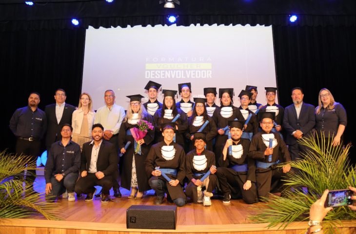 A formatura da primeira turma aconteceu nesta sexta-feira (25), no Centro de Convenções José Roberto Tadros (anexo ao Sesc Hub Academy), com a presença de familiares, professores e autoridades estaduais. O Voucher Desenvolvedor é uma iniciativa do Governo de Mato Grosso do Sul que integra a política estadual de inovação, ciência e tecnologia.