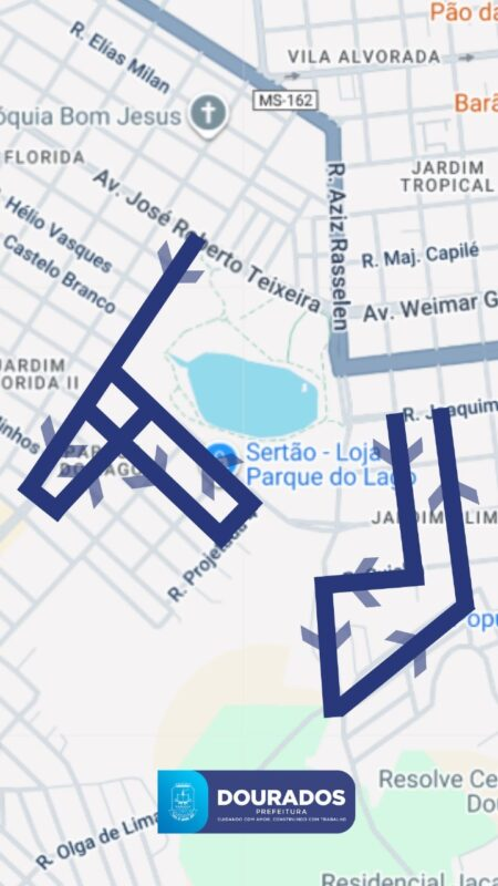 Ruas nas imediações do Parque Antenor Martins, em Dourados, passam a operar em mão única de forma temporária a partir desta semana. A alteração é necessária por conta do avanço das obras de duplicação da Rua Aziz Rasselen, uma das principais frentes de infraestrutura urbana em andamento na cidade.