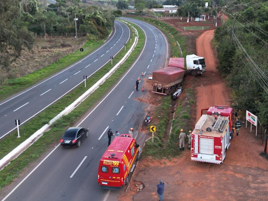 A Polícia Militar Rodoviária e o Corpo de Bombeiros de Nova Andradina permanecem na ocorrência. As causas serão apuradas.
